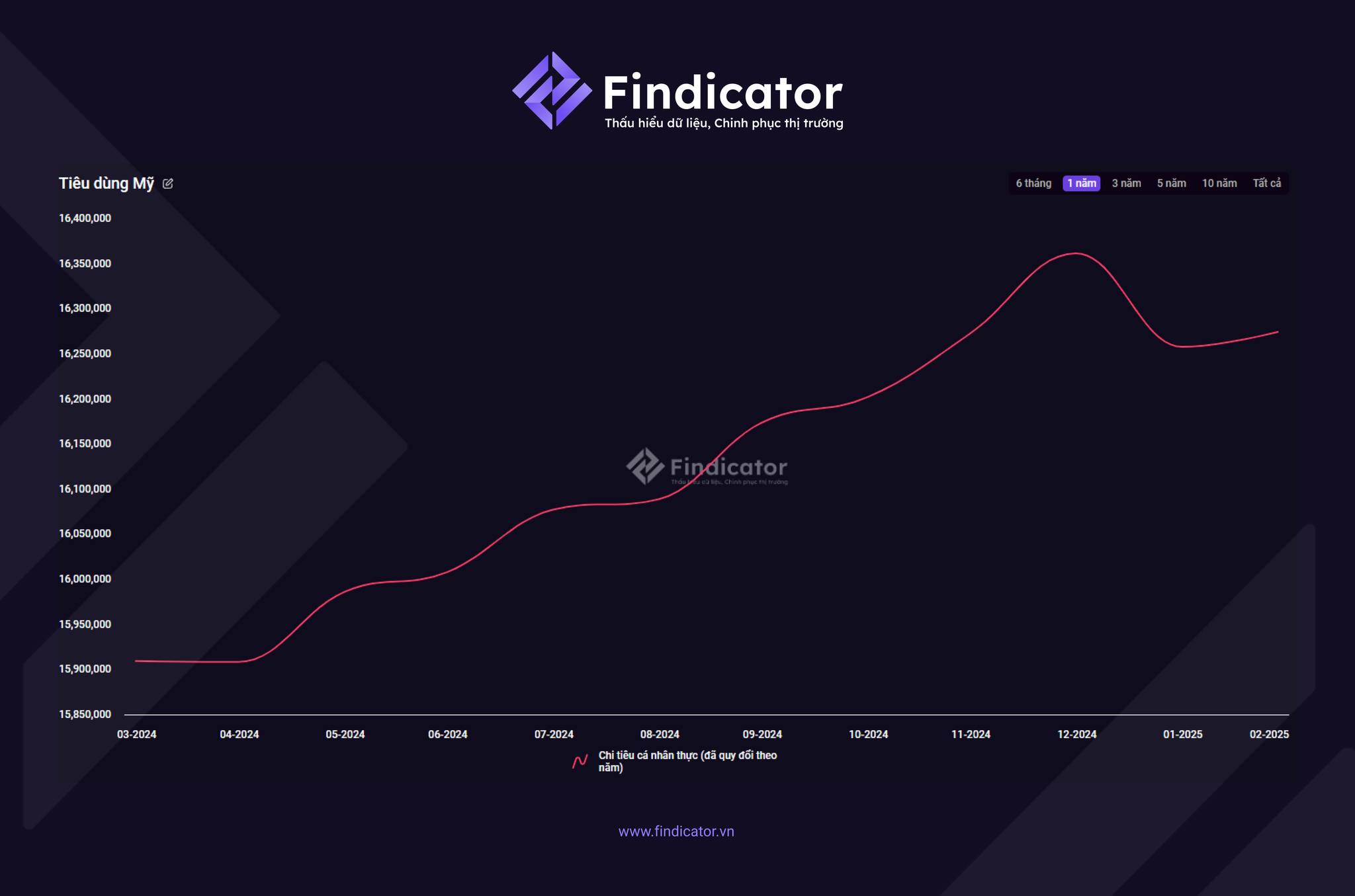 Tiêu dùng (C): Dữ liệu PCE thực cho thấy mức giảm so với quý 4/2024 báo hiệu người dân đang thắt chặt chi tiêu.