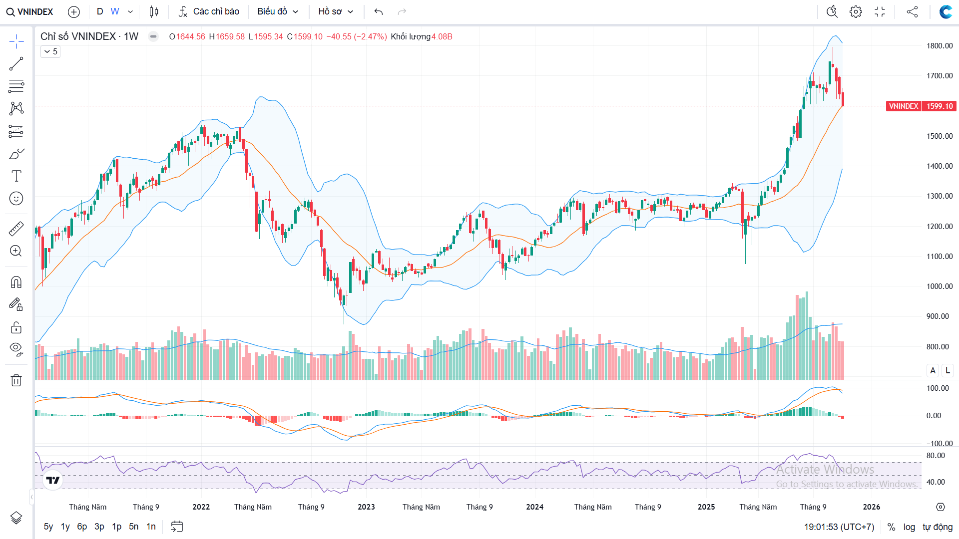 Chốt tuần giao dịch đầu tiên của tháng 11 từ 3-7/11 thị trường tiếp tục điều chỉnh thủng vùng nền hỗ trợ. VNI giảm sâu đặc biệt trong phiên cuối tuần thủng 1600đ khi đóng cửa tại 1599.10đ, giảm 40.55đ (-2.47%) so với tuần trước đó.