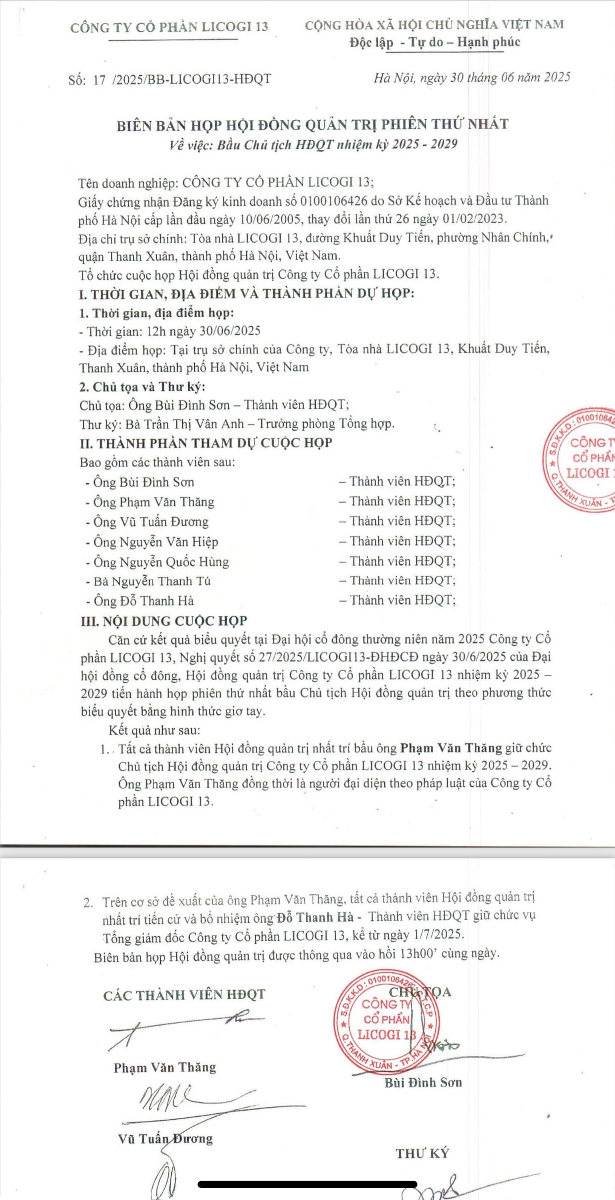 ĐHĐCĐ Licogi 13: Sắp vận hành loạt nhà máy thủy điện, phấn đấu đạt doanh thu 6.000 tỷ vào năm 2029 Tác giả: Hoàng Việt 30/06/2025 21:09 0:00 / 0:00 Nam miền Bắc (BĐT) - Sáng ngày 30/6, Công ty Cổ phần Licogi 13 (mã chứng khoán: LIG) đã tổ chức thành công Đại hội đồng cổ đông (ĐHĐCĐ) thường niên năm 2025, công bố phương hướng chiến lược cho giai đoạn 2025-2029. Chiến lược này tập trung vào việc tái cấu trúc và phát triển bền vững dựa trên ba trụ cột kinh doanh cốt lõi: Xây dựng, Bất động sản, Công nghiệp và Năng lượng tái tạo. Quảng cảnh cuộc họp ĐHĐCĐ năm 2025 của Licogi 13. Ảnh: Hoàng Việt Quảng cảnh cuộc họp ĐHĐCĐ năm 2025 của Licogi 13. Ảnh: Hoàng Việt Một trong những điểm sáng quan trọng được ban lãnh đạo công ty chia sẻ là tiến độ các dự án năng lượng. Cụ thể, nhà máy Thủy điện Sông Nhiệm 3 (công suất 14,2 MW) đã hoàn thành và dự kiến sẽ chính thức phát điện thương mại vào tháng 7/2025, hứa hẹn cung cấp trên 46 triệu kWh điện mỗi năm. Tiếp nối thành công này, Licogi 13 sẽ tập trung nguồn lực đầu tư để đưa nhà máy Thủy điện Nậm Pàn 5 (công suất 28MW, sản lượng 119 triệu kWh/năm) vào vận hành trong quý III/2026. Ban lãnh đạo nhấn mạnh, việc các nhà máy thủy điện lần lượt phát điện sẽ “tháo gỡ rất nhiều khó khăn về vốn, giảm bớt áp lực nợ vay và tạo dòng tiền ổn định” cho công ty. Bên cạnh đó, Licogi 13 vẫn tiếp tục nghiên cứu các dự án thủy điện tiềm năng khác như Nậm Khăn, Nậm Ngùa để triển khai khi thời điểm thích hợp. Đối với dự án điện gió Hướng Hóa 2 (tỉnh Quảng Trị), Công ty đang cân nhắc phương án chuyển nhượng hoặc tìm kiếm đối tác để hợp tác đầu tư. Ở mảng bất động sản, dự án Khu công nghiệp Quán Ngang (tỉnh Quảng Trị) đã được cấp giấy chứng nhận đầu tư và dự kiến sẽ khởi công trong quý I hoặc II/2026. Để đảm bảo năng lực triển khai, Licogi 13 sẽ liên danh với Công ty CP Đầu tư Xây dựng và Thương mại An Phát Vinh. Đồng thời, Licogi 13 cũng sẽ đẩy mạnh nghiên cứu, xúc tiến đầu tư vào các lĩnh vực bất động sản khác như nhà ở xã hội, khu dân cư, khu đô thị mới tại nhiều tỉnh thành có tiềm năng lớn như Ninh Bình, Hưng Yên, Lào Cai, Khánh Hòa, Bình Dương, Lâm Đồng. Mở đầu cho giai đoạn mới, trong năm 2025, Licogi 13 đặt mục tiêu doanh thu đạt 3.500 tỷ đồng và lợi nhuận trước thuế của công ty mẹ là 45 tỷ đồng. Xa hơn, trong giai đoạn 2025–2029, Licogi 13 đặt ra lộ trình tăng trưởng doanh thu và lợi nhuận ổn định ở mức 10% - 15% mỗi năm. Dựa trên đà tăng trưởng này, đến năm 2029, Licogi 13 hướng tới mục tiêu doanh thu hợp nhất đạt từ 5.000 đến 6.000 tỷ đồng và lợi nhuận sau thuế tối thiểu 100 tỷ đồng, với tổng tài sản hợp nhất dự kiến vượt mốc 7.000 tỷ đồng. Công ty Licogi 13 cũng cam kết chính sách cổ tức từ 5-7% nếu đạt lợi nhuận mục tiêu và duy trì dòng tiền bền vững, đồng thời lên kế hoạch tăng vốn lên tối thiểu 1.500 tỷ đồng vào năm 2030 để củng cố nền tảng tài chính cho các chiến lược dài hạn.
