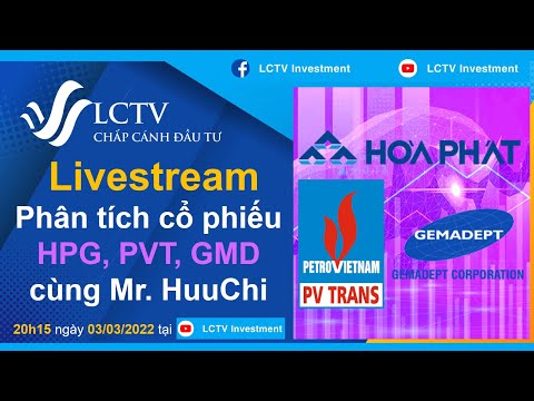 Trân trọng kính mời quý NĐT theo dõi Livestream chủ đề “ Phân tích 3 cổ phiếu HPG, PVT, GMD cùng Mr HuuChi” vào 20h15 tối nay ngày 03/03/2022 trên kênh Youtube LCTV Investment.