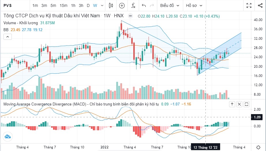 - Chỉ báo MACD đang tiến về mức trên 0 (tín hiệu cho thấy cổ phiếu đang bước vào chu kỳ tăng giá trung hạn).