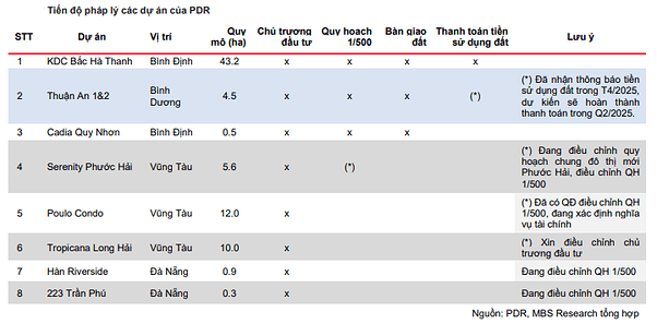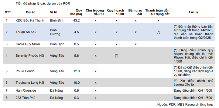 - Tình hình kinh doanh: PDR ghi nhận doanh thu Q1/2025 tăng 170% svck từ dự án Quy Nhơn Iconic. Biên lợi nhuận gộp cải thiện lên 40% từ 36,5%. Trong năm 2025, PDR dự kiến sẽ phục hồi lợi nhuận trên mức nền thấp của năm 2024 từ hoạt động kinh doanh cốt lõi.