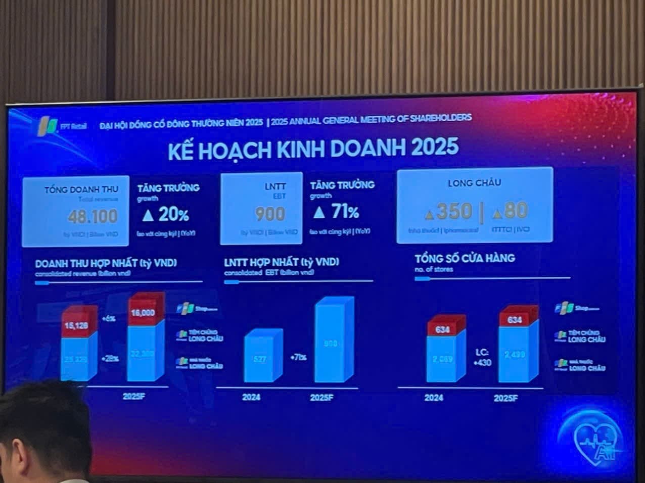 - FRT đặt mục tiêu doanh thu hợp nhất 48.100 tỷ đồng, tăng ~19,9% so với 2024.