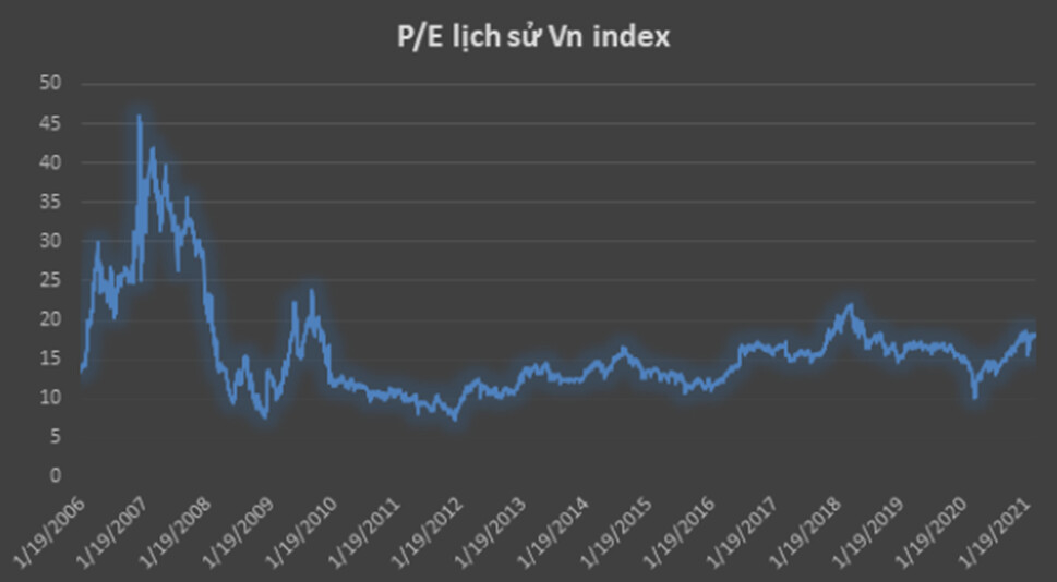 2. VNINDEX đang nằm ở đâu nếu xét về PE