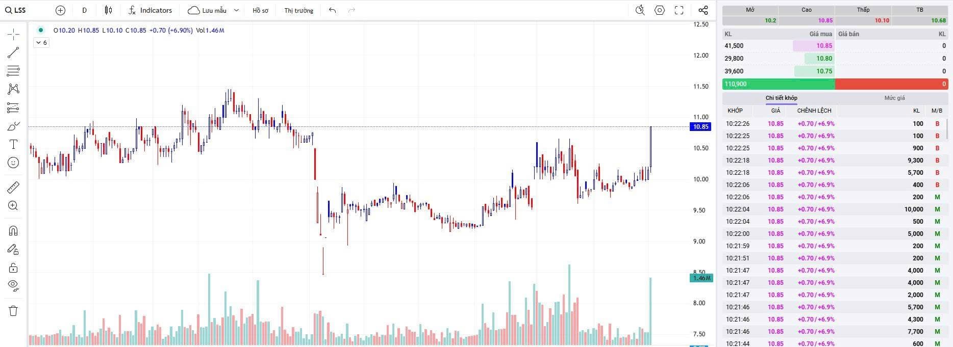 LSS cổ phiếu tích lũy vùng đáy - Tăng kịch trần vol lớn