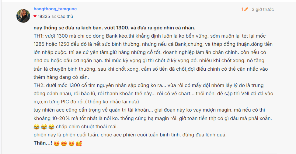 Nếu VNI cũng tăng 15% thì chúng ta đã có 1.500 rồi. Cho nên View 1.700-1.800 điểm là ko phải hoang tưởng đâu!