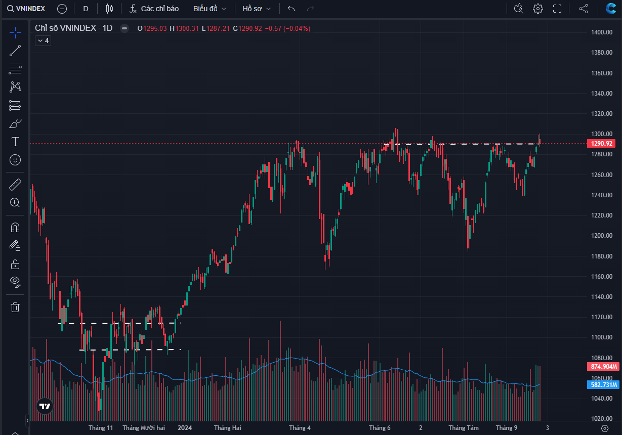 Anh em chú ý, đoạn này thị trường vẫn còn cản 1300. Sau khi vượt cản là cả một bầu trời, thêm với việc thanh khoản sẽ dần được cải thiện; chiến lược, cách đánh của chúng ta sẽ thay đổi mà phù hợp với giai đoạn đó được.