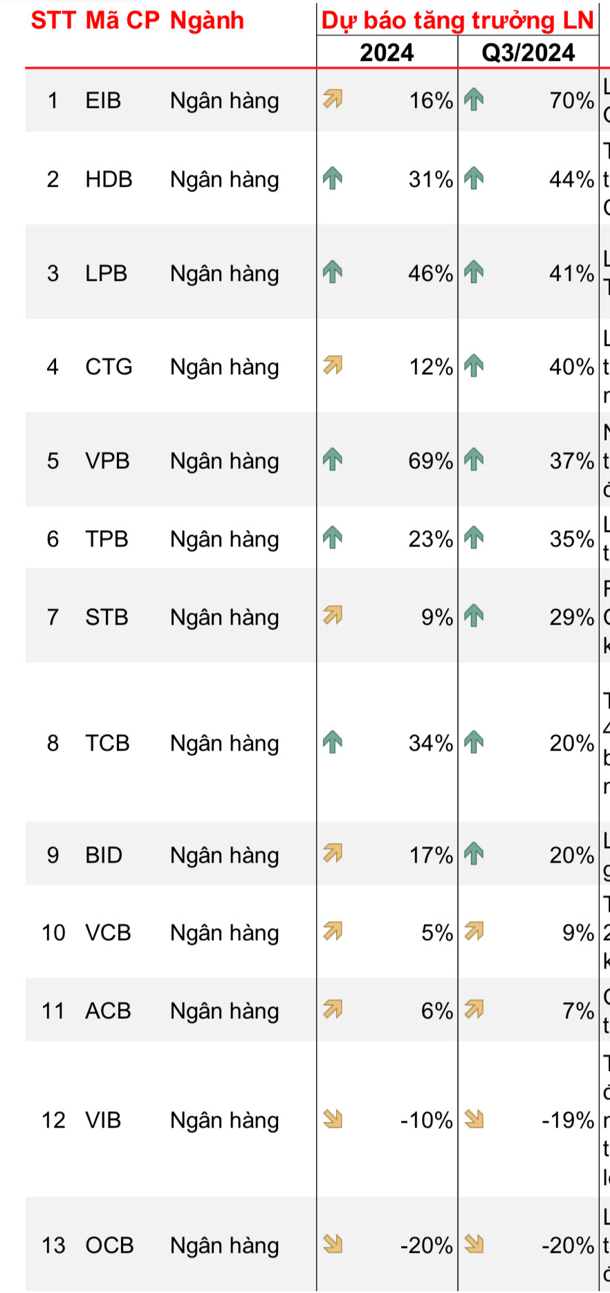 Dòng Bank được dự báo tăng trưởng khá tốt so với cùng kỳ trong quý 3/2024.