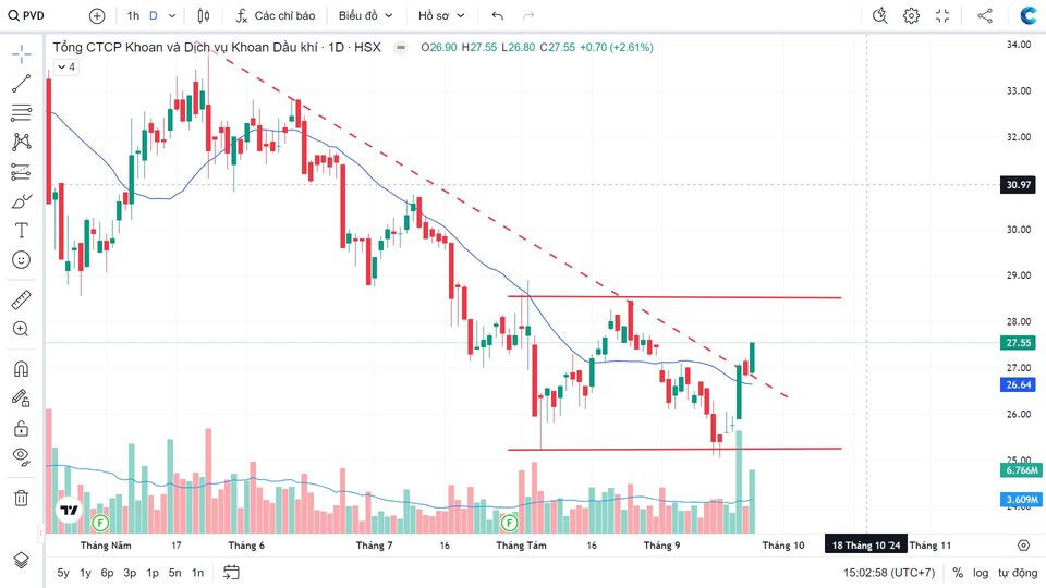 Khả năng là có, vượt trendline trung hạn, đóng nến cao nhất phiên, vol vào tốt