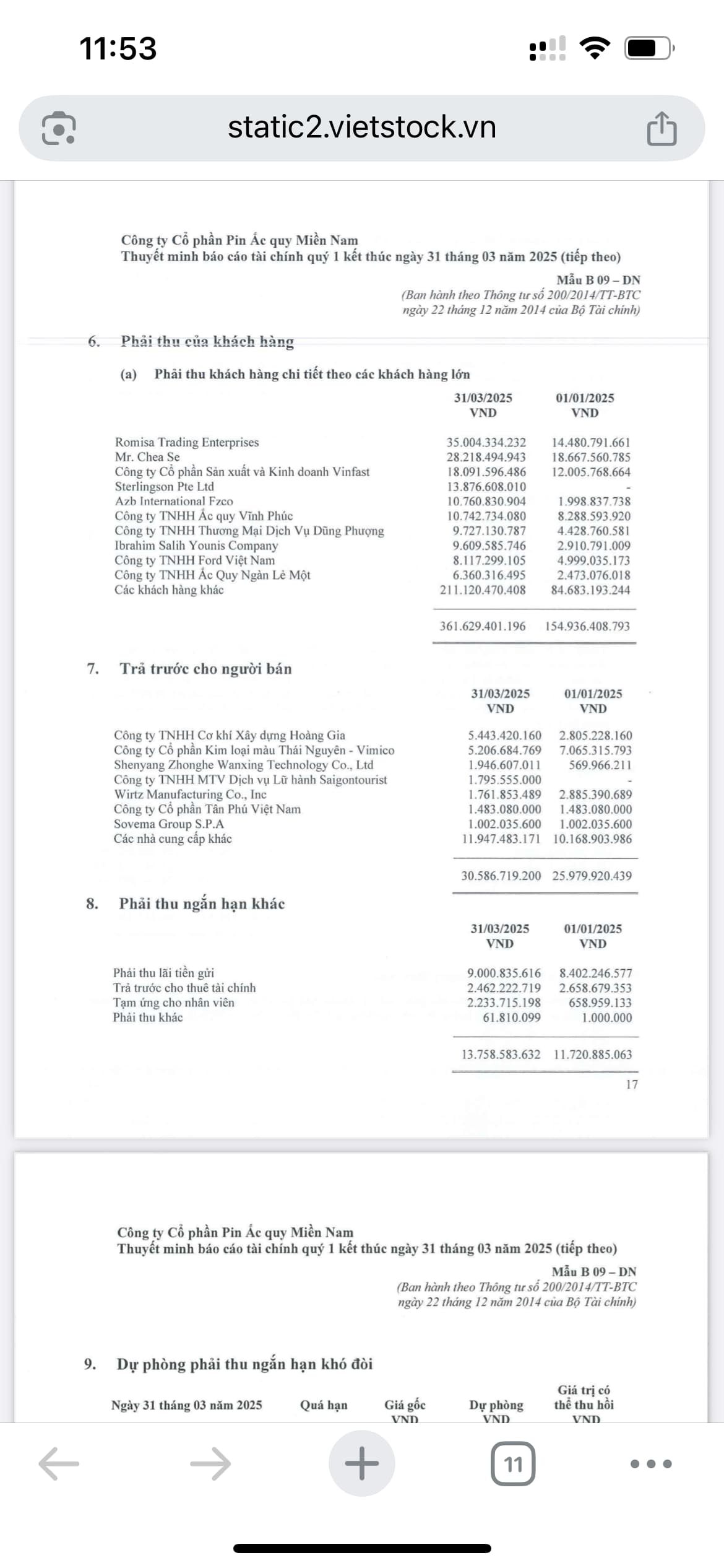 Nhưng có chút tích cực khoản phải thu từ các đối tác tăng tương đối mạnh.