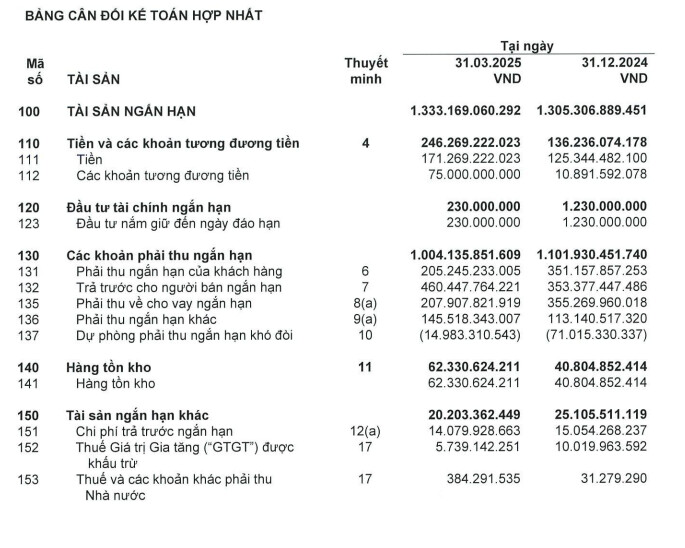Phải thu chiếm tỷ trọng khá lớn trong tài sản: