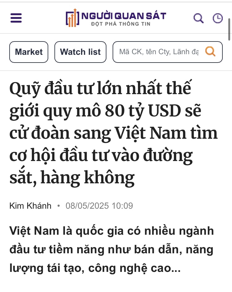 Media nổ kinh quá, nhưng quỹ 80 tỷ đô thì cũng rất ngon. Vam vào hàng không và công nghệ vì năm nay VN thu hút rất nhiều $$$ cho bọn nó