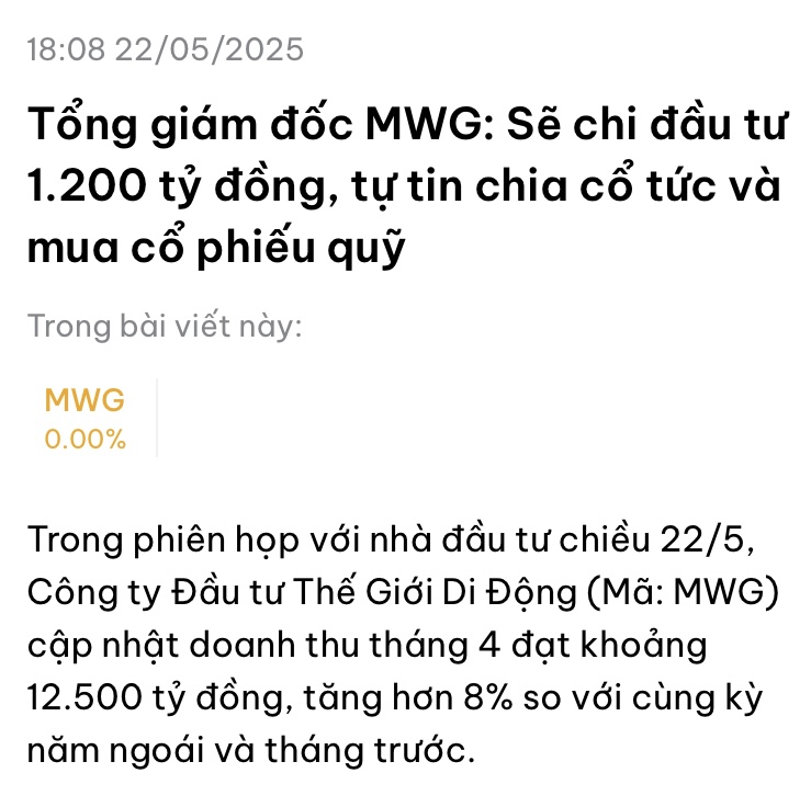 Quan sát nó từ lâu có chém với @mr_le198x lúc lão ấy hỏi đoạn tới con gì ngon. Vam nói MWG.