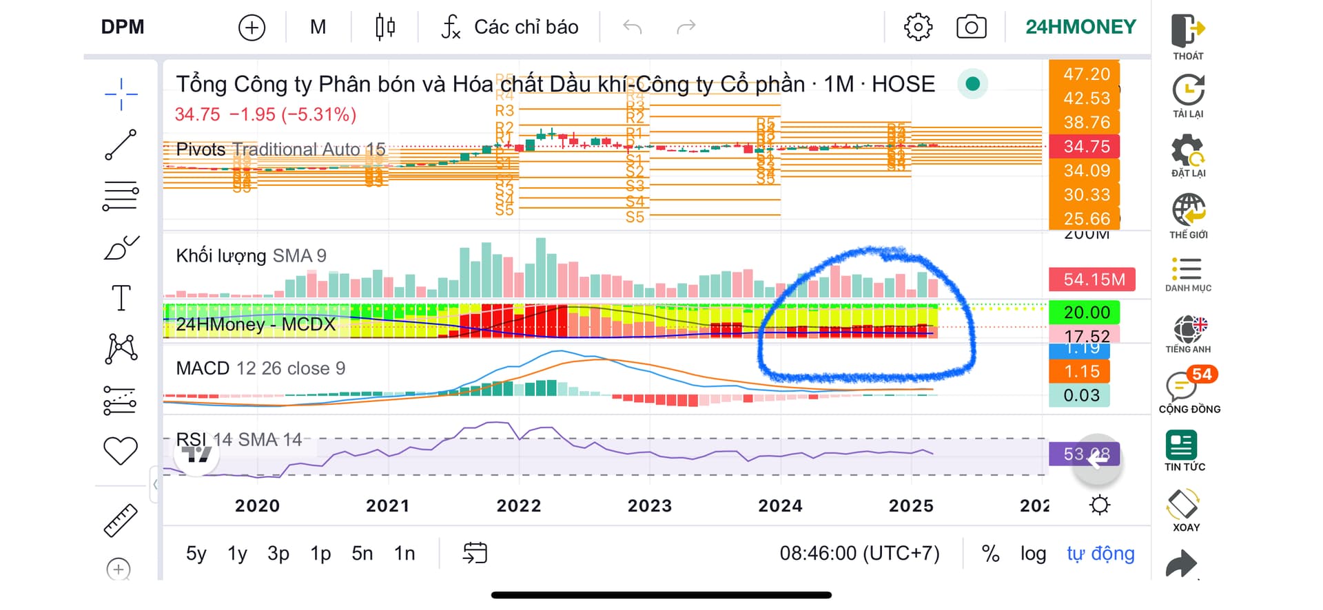 E thấy chart tháng thì có tiền lớn nó hold. Kqkd quý 1 bằng cả năm (giá ure quý 1 đạt đỉnh chỉ sau 2021), tháng 7 thêm khoản hoàn thuế VAT, năm nay cực khủng