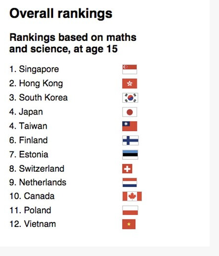 Lê lấy lại cái bảng này xếp hạng của thế giới về một số môn nhé. Nếu yếu kém thì rất khó để chen chân được Hàn Quốc, Nhật, Phần Lan, Đài Loan … thì ko thể nói là thuộc top yếu kém của thế giới hay của Đông Nam Á được