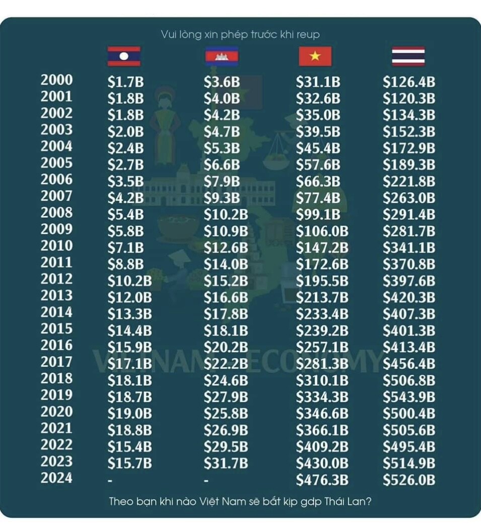 Đã có giai đoạn kinh tế Thái Lan nhìn VN bằng nửa con mắt nhiều chuyên gia còn dự báo cả trăm năm vn mới đuổi theo dc Sing và Thái.