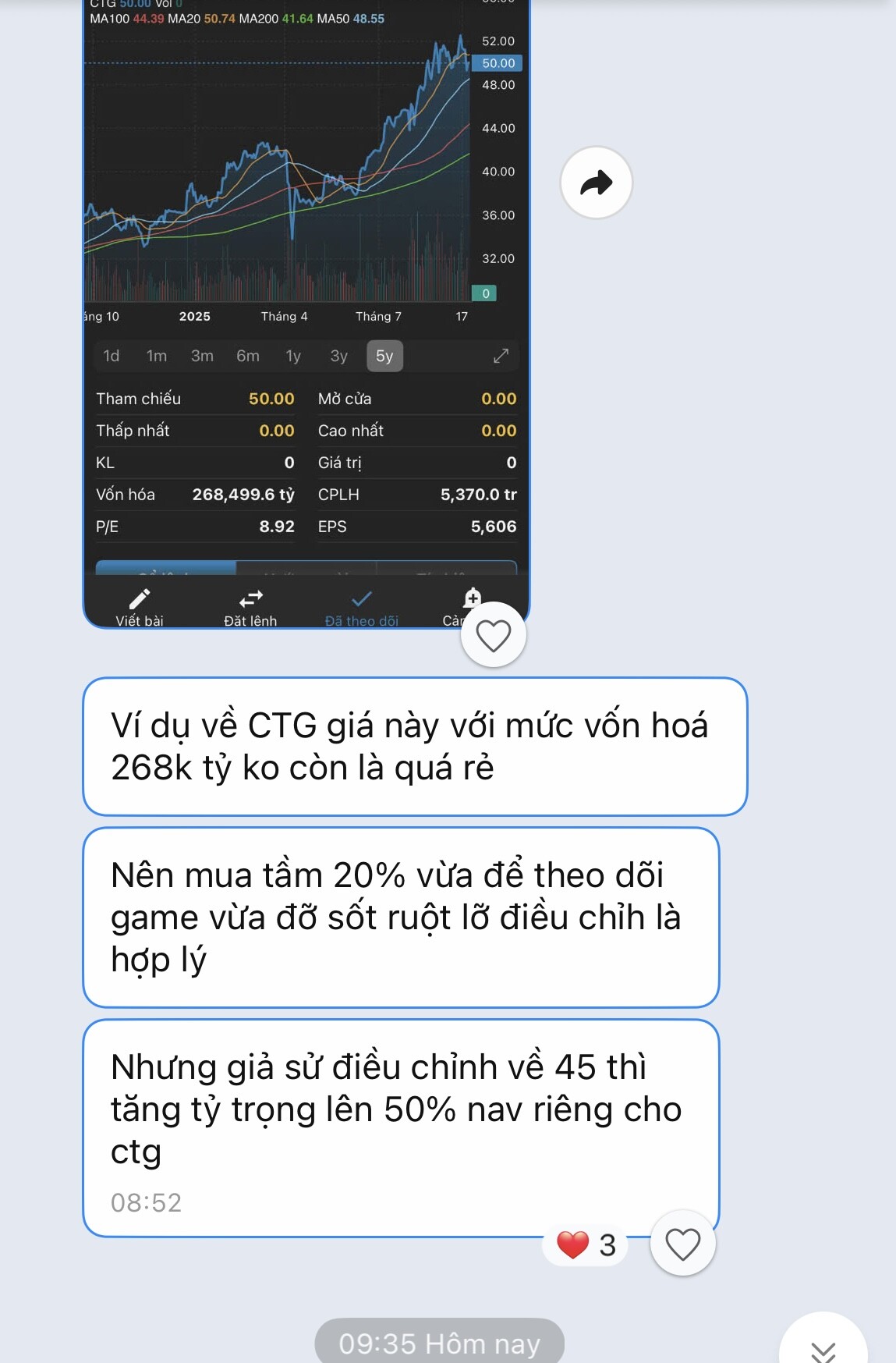 Còn việc mua cp thị trường quyết định chỉ tầm 20% là cùng mà mua là xem thử nó có gì để xứng đáng với giá hiện tại mà mình mua hay chờ chiết khấu tốt hơn.