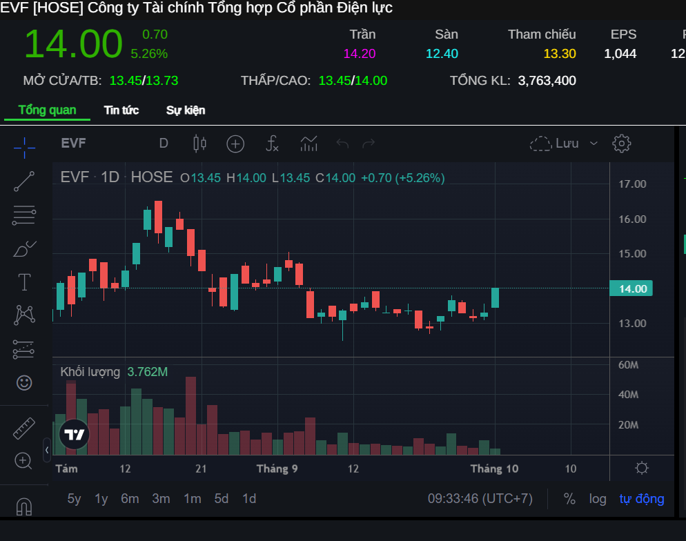 EVF là một trong những mã tài chính đáng quan tâm, đặc biệt nếu nhóm tài chính – dịch vụ tài chính hồi phục. Với giá hiện tại (~13.200 đồng) và vốn hóa ~10.000 tỷ đồng, nếu EVF có cú bật cùng sóng ngành, thì mức lợi nhuận có thể đáng kể nếu vào sớm và thoát đúng điểm.Khuyến nghị: MUA: EVF: 12-14 Target: 20. Cutloss: 8