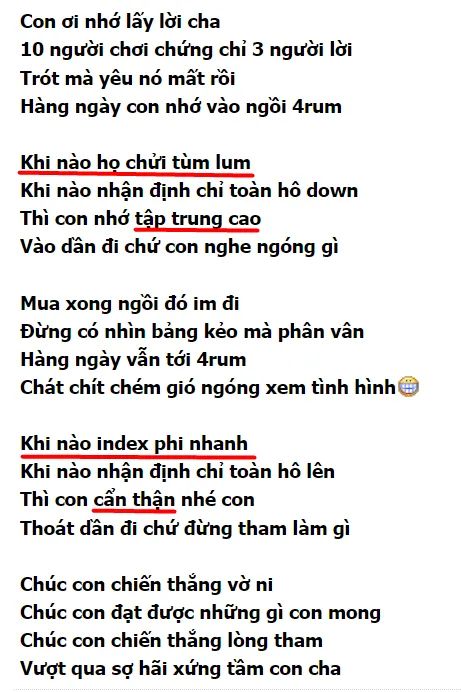 Hãy nhớ thống kê 95% thua lỗ. Nay bắt đáy đúng thì lần sau sẽ nguy hiểm. 3 lần bắt, lần này mới đúng. Liệu là qua 2 lần kia, bạn còn bao nhiêu?