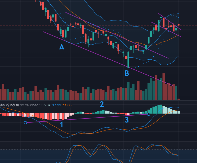 và: Có 1 sự bẻ lưng cn gấu ( MACD vượt 0)