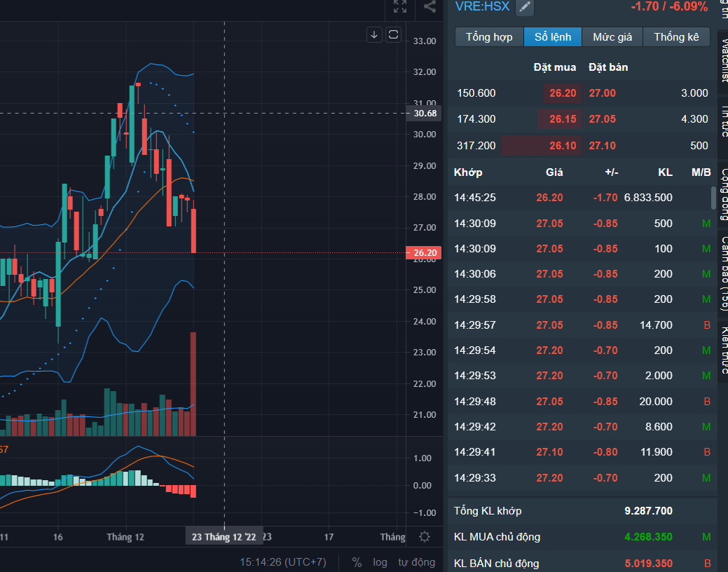 Sau phiên hôm 12-12 đạp mạnh, thị trưởng đo nhưng lình xình quanh tham chiếu,v à giảm không sâu