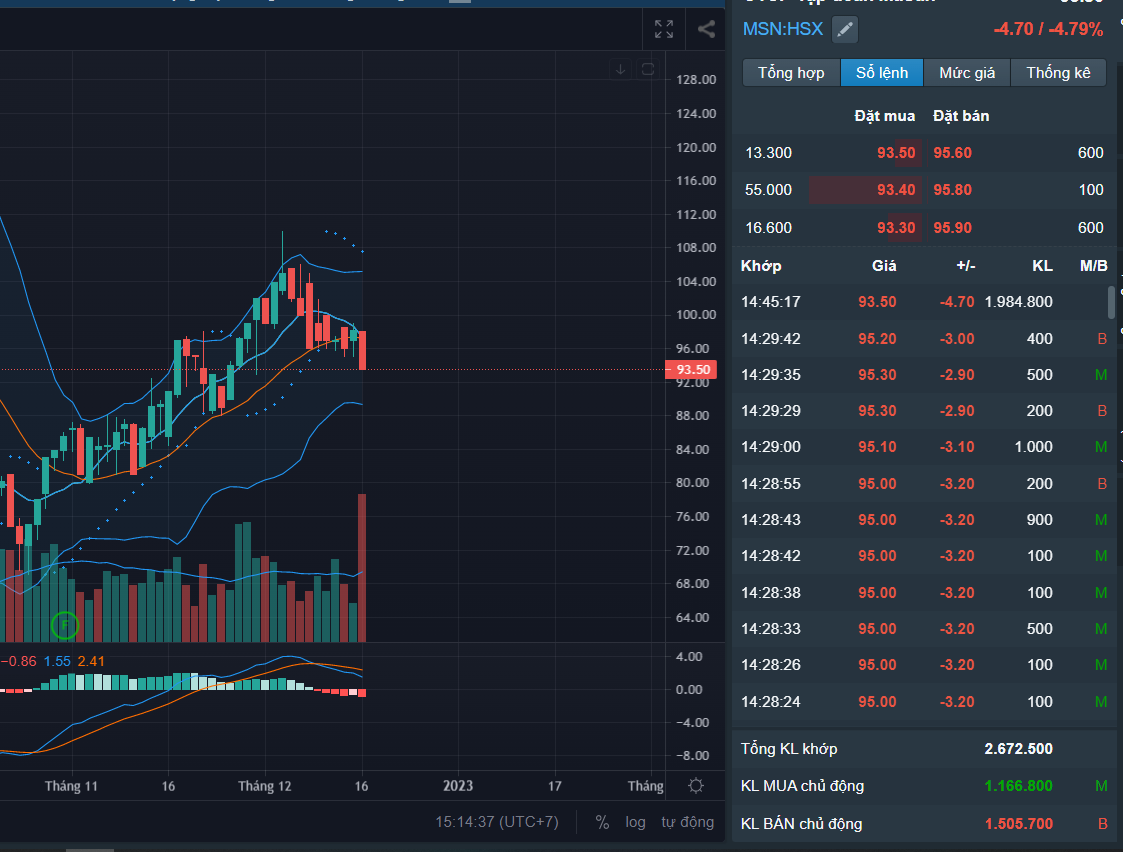 Phiên 15/2 là 1 phiên bull mạnh, chiều giảm nhẹ, cuối phiên ( 10 phút và ATC) kéo nhẹ trả điểm.