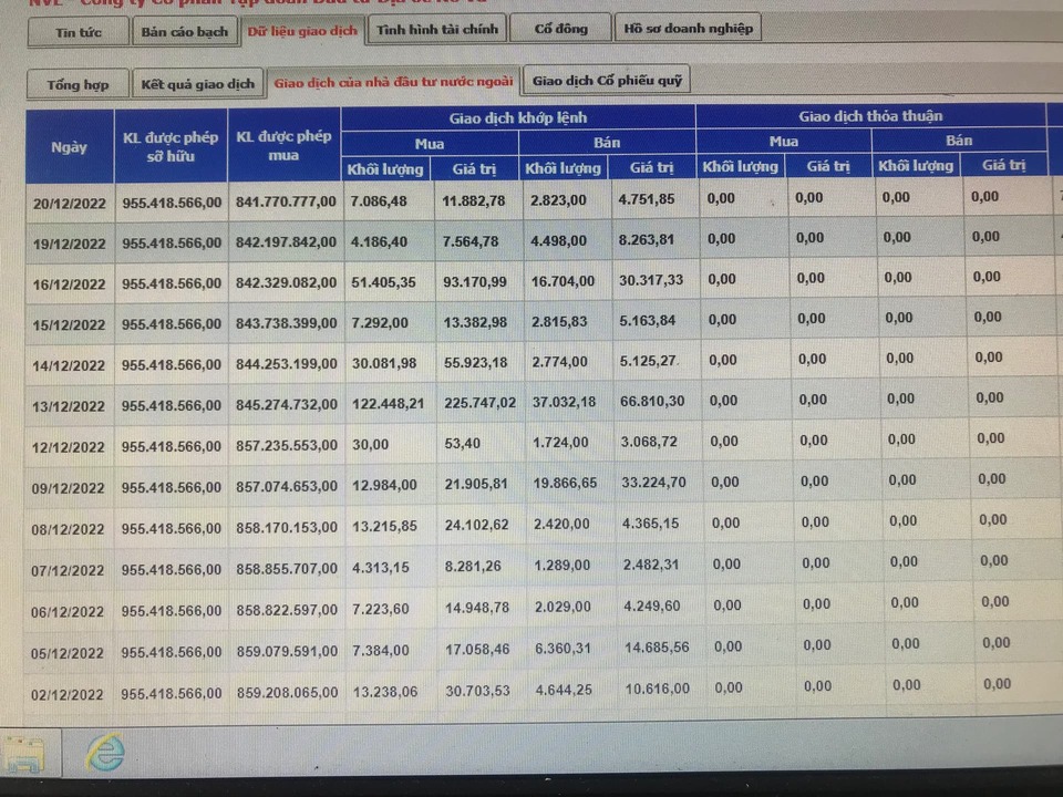NVL đạt đáy ở 15.3 vào ngày 21-12