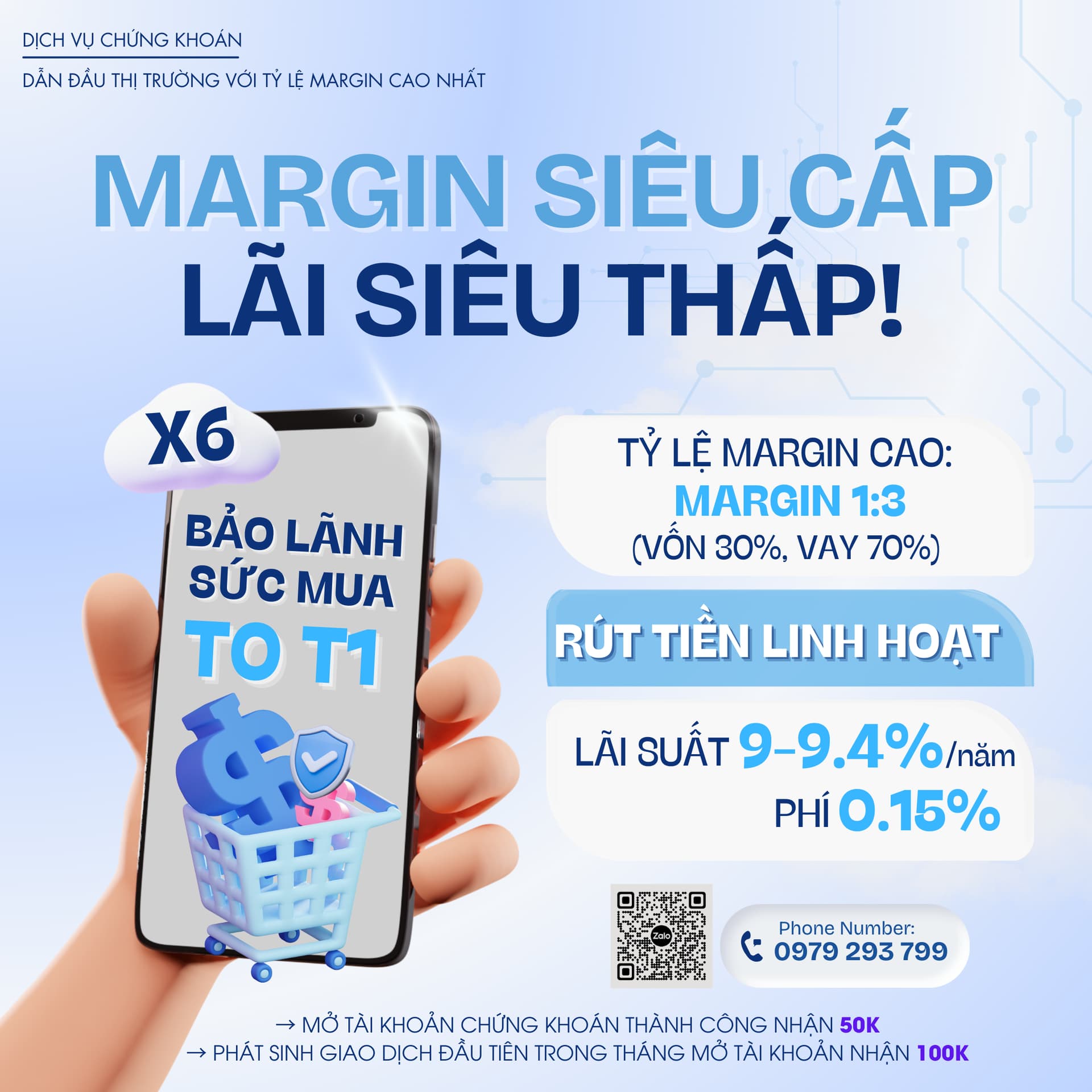 Tỷ lệ Margin Cao: MARGIN 3:7 (Vốn 30%, vay 70%) (Tùy danh mục)
