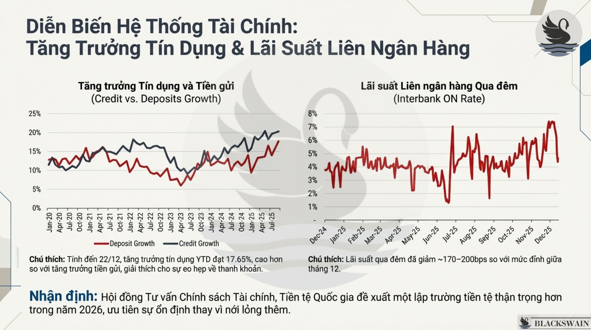 Áp lực Thanh khoản Hệ thống: Tăng trưởng tín dụng tính đến ngày 22/12 đạt 17,65% YTD , trong khi tăng trưởng huy động chỉ ở mức 9-10% ,. Sự chênh lệch này tiếp tục giải thích cho tình trạng thắt chặt nguồn vốn hiện nay. Tuy nhiên, lãi suất liên ngân hàng qua đêm đã giảm khoảng 170-200 điểm cơ bản so với đỉnh giữa tháng.
