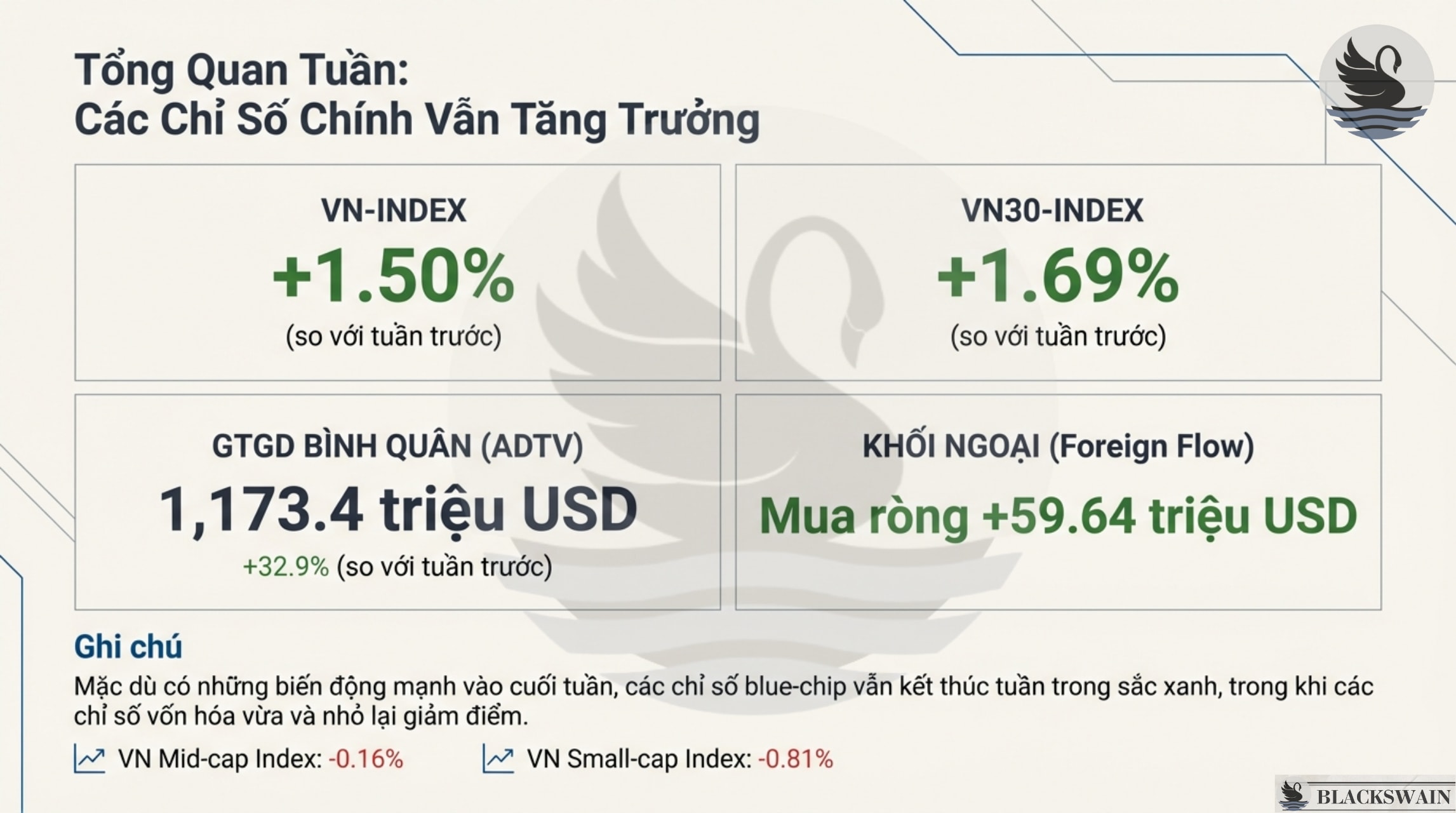 Sự phân hóa sâu sắc: Trong khi VN30 tăng 1,69% , nhóm cổ phiếu vốn hóa vừa (Mid-cap) và nhỏ (Small-cap) lại lần lượt giảm 0,16% và 0,81% . Điều này phản ánh tâm lý thận trọng của nhà đầu tư bên ngoài nhóm cổ phiếu trụ cột (blue-chip).
