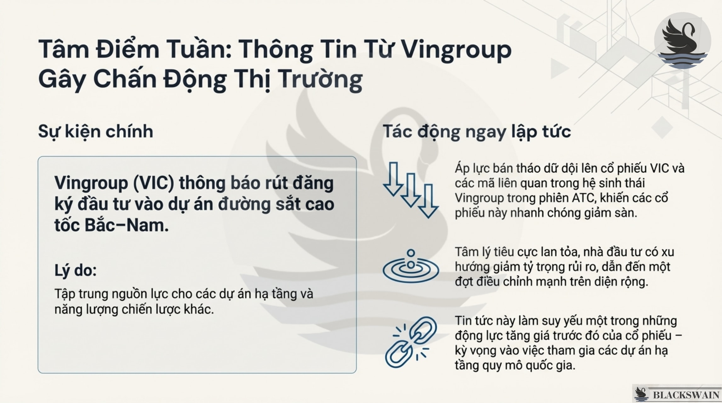 - Chỉ số bứt phá rồi điều chỉnh: VN-Index khởi đầu tuần tích cực và tiến gần đến mức cao kỷ lục lịch sử. Tuy nhiên, thị trường chịu áp lực bán tháo đột ngột vào phiên thứ Năm sau khi tập đoàn Vingroup công bố rút khỏi dự án đường sắt cao tốc Bắc-Nam. Mặc dù vậy, nhờ lực cầu bắt đáy tại các vùng giá thấp và sự ổn định của nhóm vốn hóa lớn, VN-Index vẫn kết tuần tăng 1,5% , đóng cửa tại mức khả quan,.
