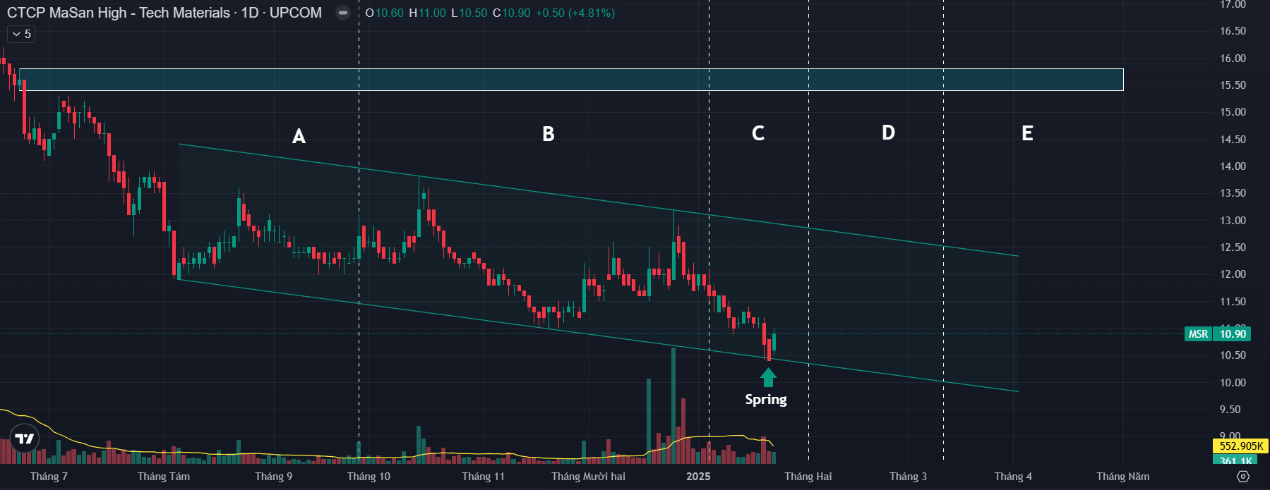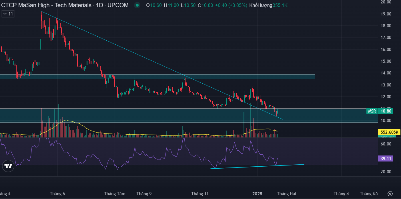 Cập nhật: MSR đã giảm về backtest cản chéo như tin nhắn trả lời, có tín hiệu phân kỳ dương. Ngày mai nến xanh nữa là có thể coi như xác nhận tín hiệu đảo chiều xu hướng