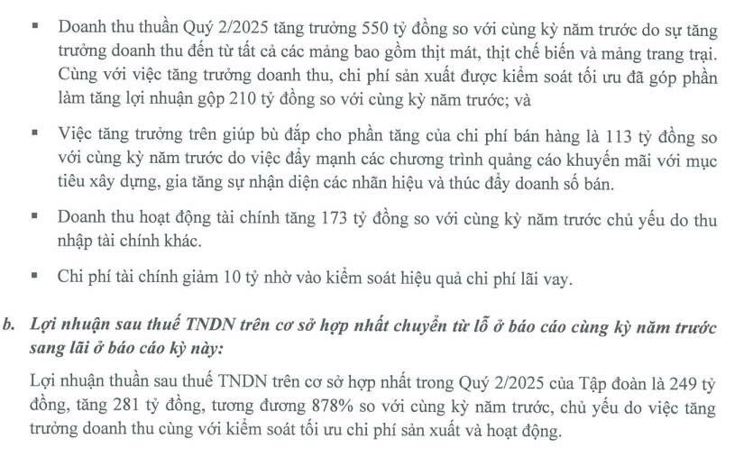 - Biên lợi nhuận gộp tăng trưởng so với cùng kỳ và giảm nhẹ so với quý trước ở mức >27% nhờ giá heo duy trì quanh mức 70.000đ/kg.