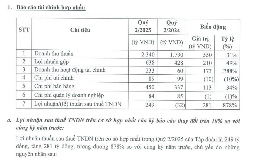 - LNST thu nhập doanh nghiệp đạt 248,7 tỷ đồng (+870% YoY).