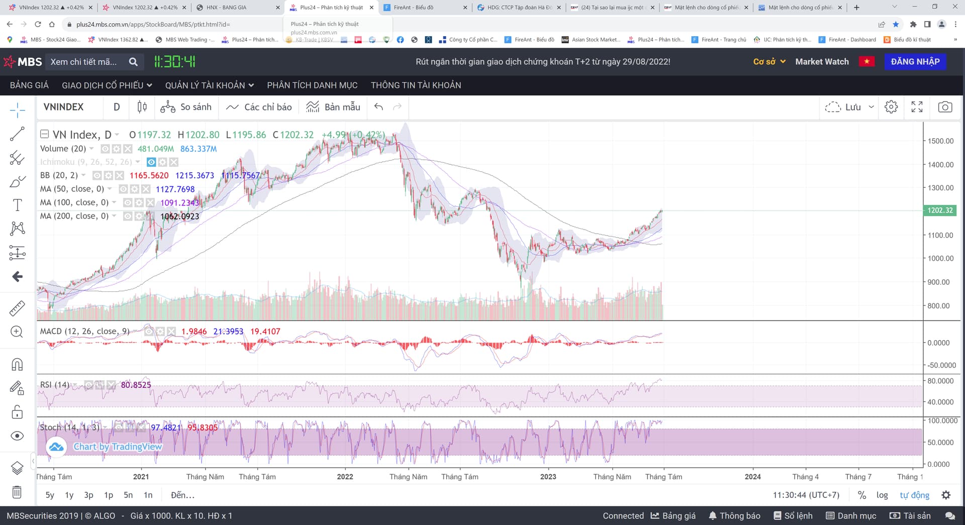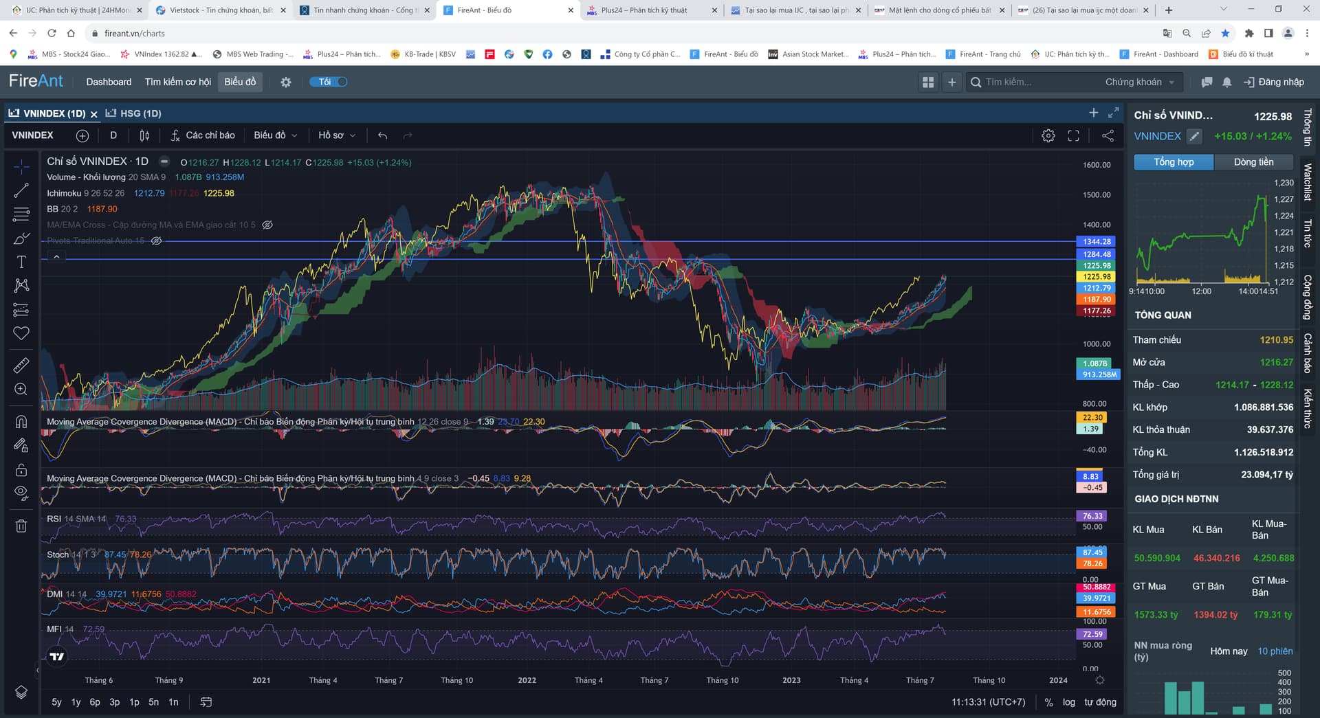 nến giá của vnindex đang vượt trên tất cả các đường MA quan trọng nhìn lại quá khứ như vậy nó sẽ tăng tiếp khả năng vượt 1300 điểm