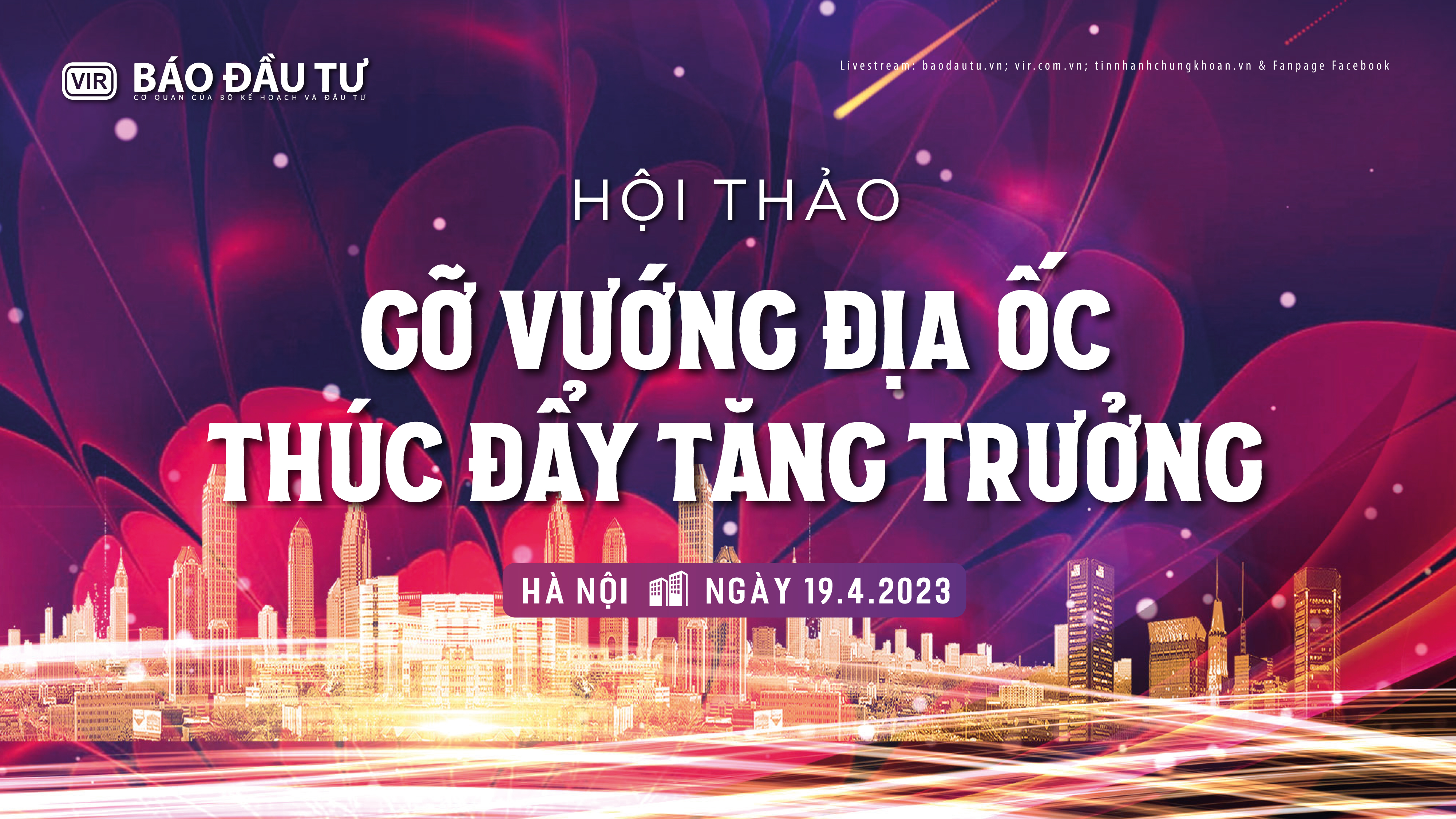(ĐTCK) Ngày 19/4/2023, Báo Đầu tư sẽ tổ chức Hội thảo “Gỡ vướng địa ốc - thúc đẩy tăng trưởng”, bàn về những giải pháp tháo gỡ cơ chế, chính sách, khơi thông dòng vốn vực dậy thị trường bất động sản, tạo động lực phát triển bền vững nền kinh tế.
