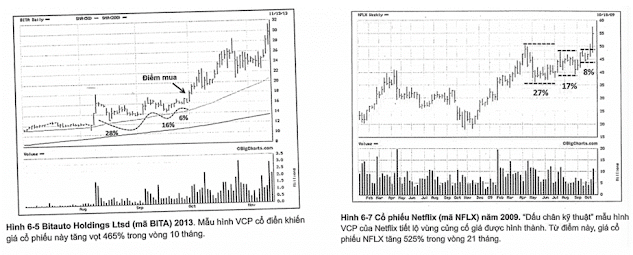 Trên đây là hai hình ảnh minh họa về mẫu hình VCP do Mark Minervini trình bày trong Chương 6 của cuốn sách “Cách tư duy và giao dịch như một nhà vô địch đầu tư chứng khoán”.