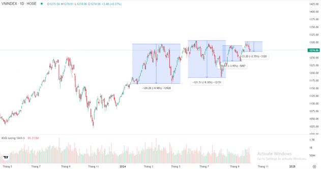 Áp dụng mẫu hình VCP để cùng phân tích đồ thị của Chỉ số Vnindex