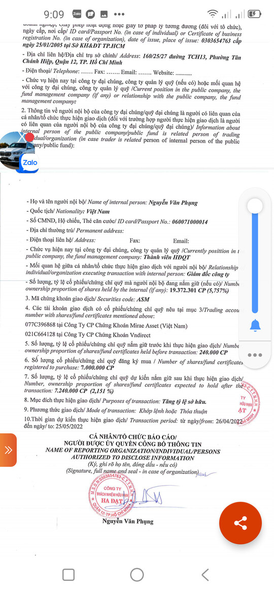 M nghĩ đây là động thái tích cực từ phía Ban LĐ để cho cổ đông có niềm tin tiếp tục đồng hành. Asm vẫn lên 3x, có điều thị trường như thế này thì quá trình chờ đợi sẽ phải lâu hơn thôi.