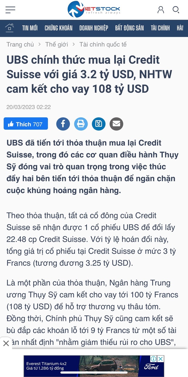 Nó phải giải cứu thôi khác vì bank Mỹ mà nó là bank lớn thứ 2 và Thuỵ Sỹ là nơi chứa tiền của tài phiệt sụp đổ thì hậu quả rất lớn