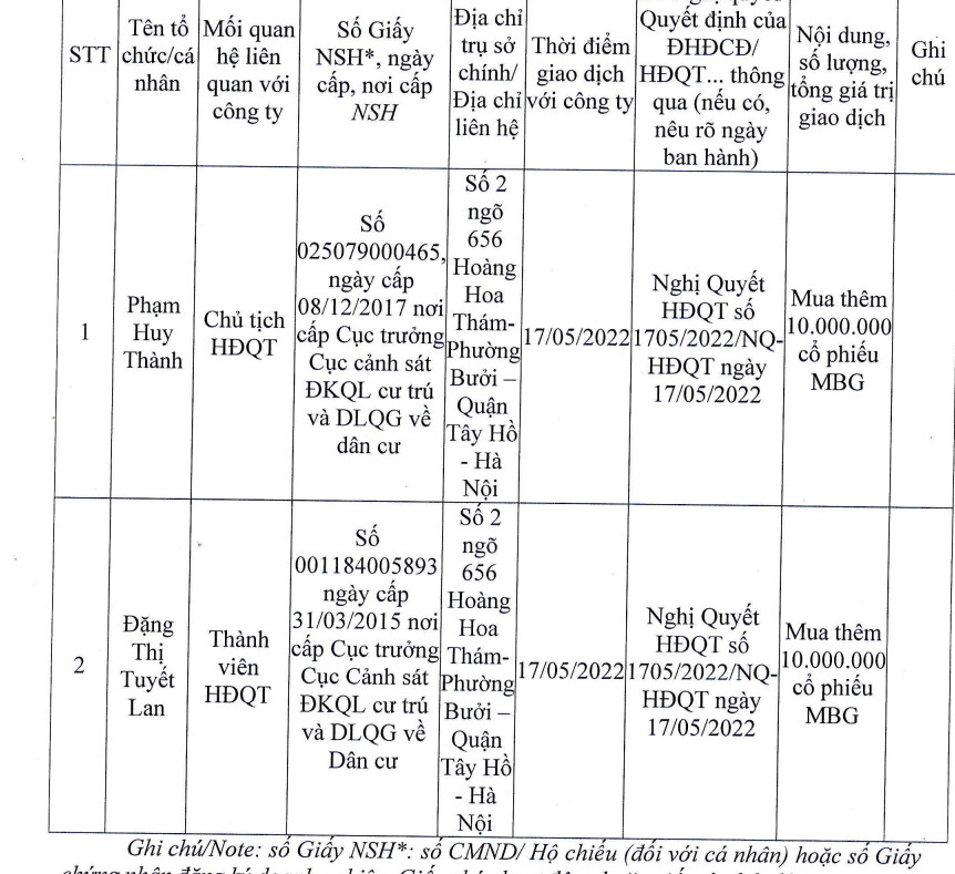 - Năm 2021 và năm 2022 là năm mà MBG bắt đầu bước vào giai đoạn bứt phá về kinh doanh: