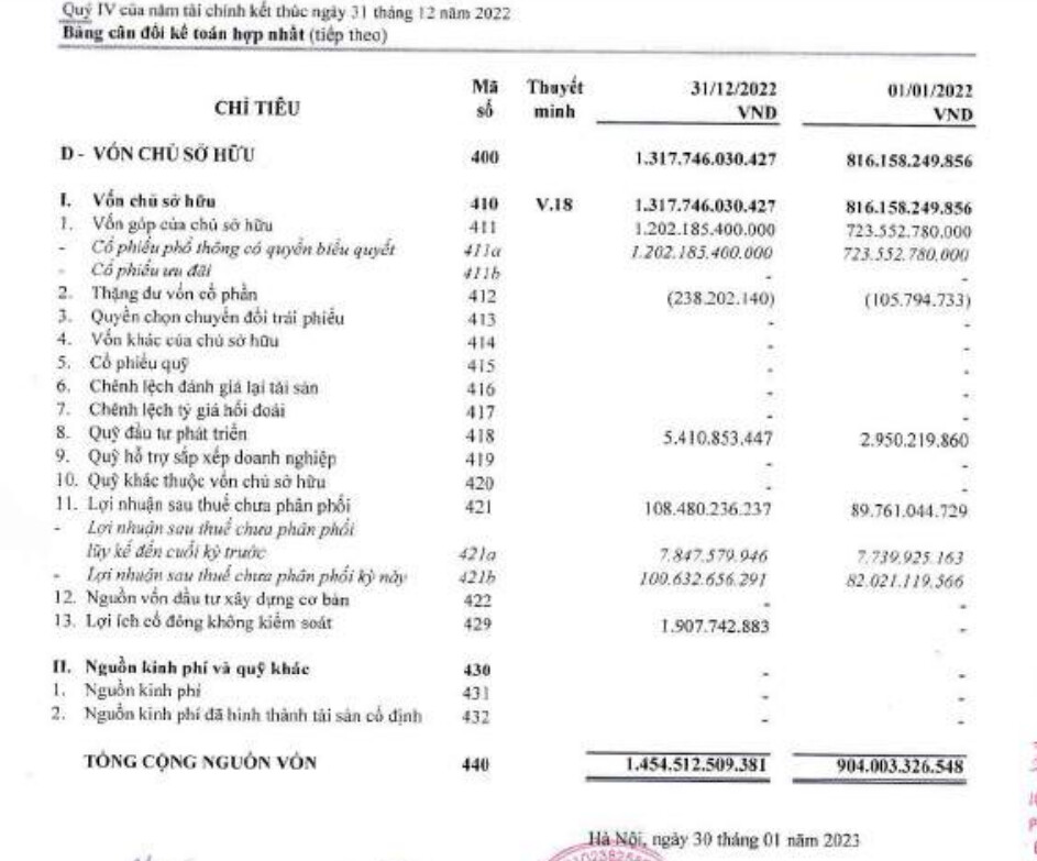 Trong báo cáo tài chính hợp nhất Q4/2022 cho thấy: