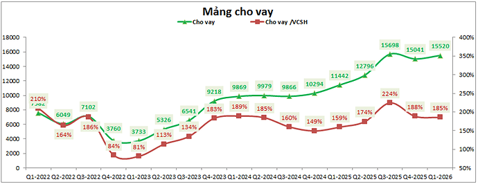 Vì vậy KQKD Q2-2026 trở đi có thể mảng cho vay sẽ tiếp tục tăng thêm và tăng lên mức nền mới cả về tài sản cho vay cũng như KQKD mảng cho vay.