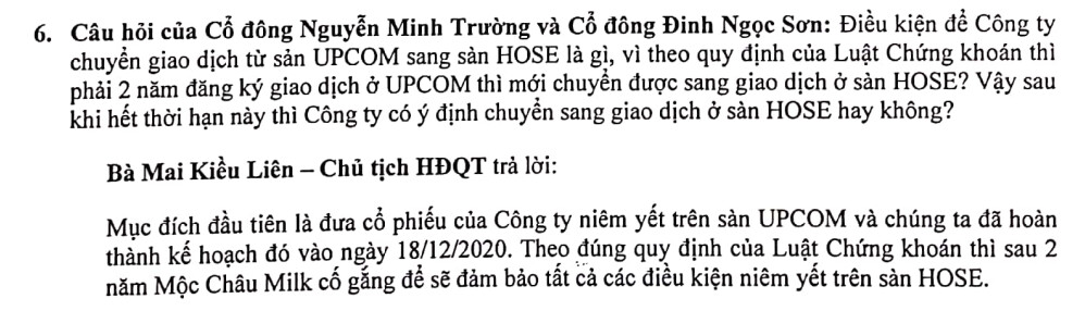 Mộc Châu Milk sẽ là át chủ bài của VNM trong việc duy trì tăng trưởng cho các năm kế tiếp. Thương hiệu sữa Mộc Châu sẽ là làn gió mới trong chiến lược củng cố vị thế ngành sữa của VNM với áp lực cạnh tranh khá khốc liệt trong ngành. Để duy trì vị thế và tăng trưởng trong ngành thực phẩm, tạo ra nhiều sự lựa chọn cho khách hàng và chạy theo thị hiếu của người tiêu dùng là những yếu tố tiên quyết. Việc đẩy thương hiệu Mộc Châu Milk vào hệ sinh thái sản phẩm của VNM là nhằm đáp ứng tiêu này. Một thương hiệu lâu đời, chất lượng cao đã được kiểm chứng, đúng với thị hiếu người tiêu dùng sẽ là bảo chứng cho sự thành công của chiến lược này. Động thái đưa sản phẩm của Mộc Châu vào danh mục các sản phẩm chủ đạo để xuất khẩu ra thị trường quốc tế xác nhận cho chiến lược này của VNM