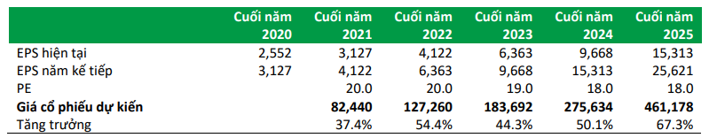Đối với một công ty tăng trưởng, định giá tại thời điểm cuối năm cho một cổ phiếu sẽ được định giá bằng PE định giá và EPS dự kiến năm sau đó của cổ phiếu đó. Theo đó, mức giá hợp lý dự kiến chúng tôi cho là hợp lý đối với cổ phiếu MCM tại thời điểm cuối các thời điểm theo chu kỳ dự báo của chúng tôi như sau