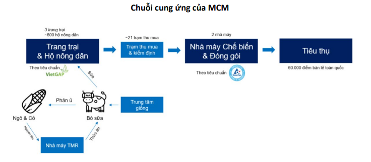 Sản xuất, chế biến, và kinh doanh sữa: MCM có một nhà máy sữa với công suất 250 tấn/ ngày, sản xuất khoảng 16 SKU bao gồm sữa tươi thanh trùng, sữa tươi tiệt trùng (UHT), sữa chua, bơ và phô mai. Các sản phẩm sữa là các sản phẩm chủ lực đóng góp doanh thu chính cho MCM, với tỷ trọng tương ứng 88% trong năm 2020