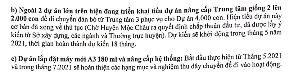 đặt mục tiêu tăng sản lượng sữa bình quân trên từng con bò từ mức 25 lít/con/ngày lên trên 27 lít/con/ngày (mức sản lượng của trang trại VNM) qua việc cải tiến chọn giống và chăm sóc bò.