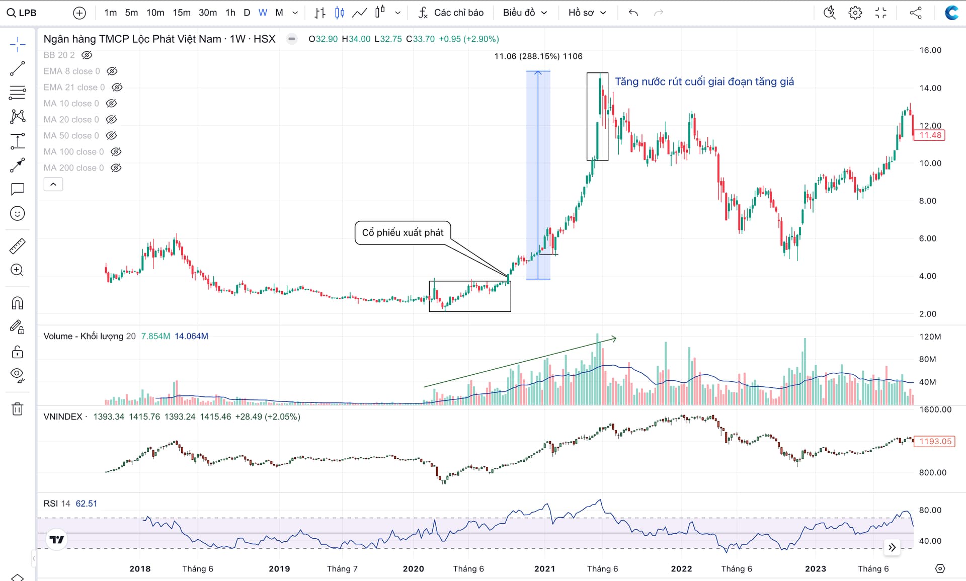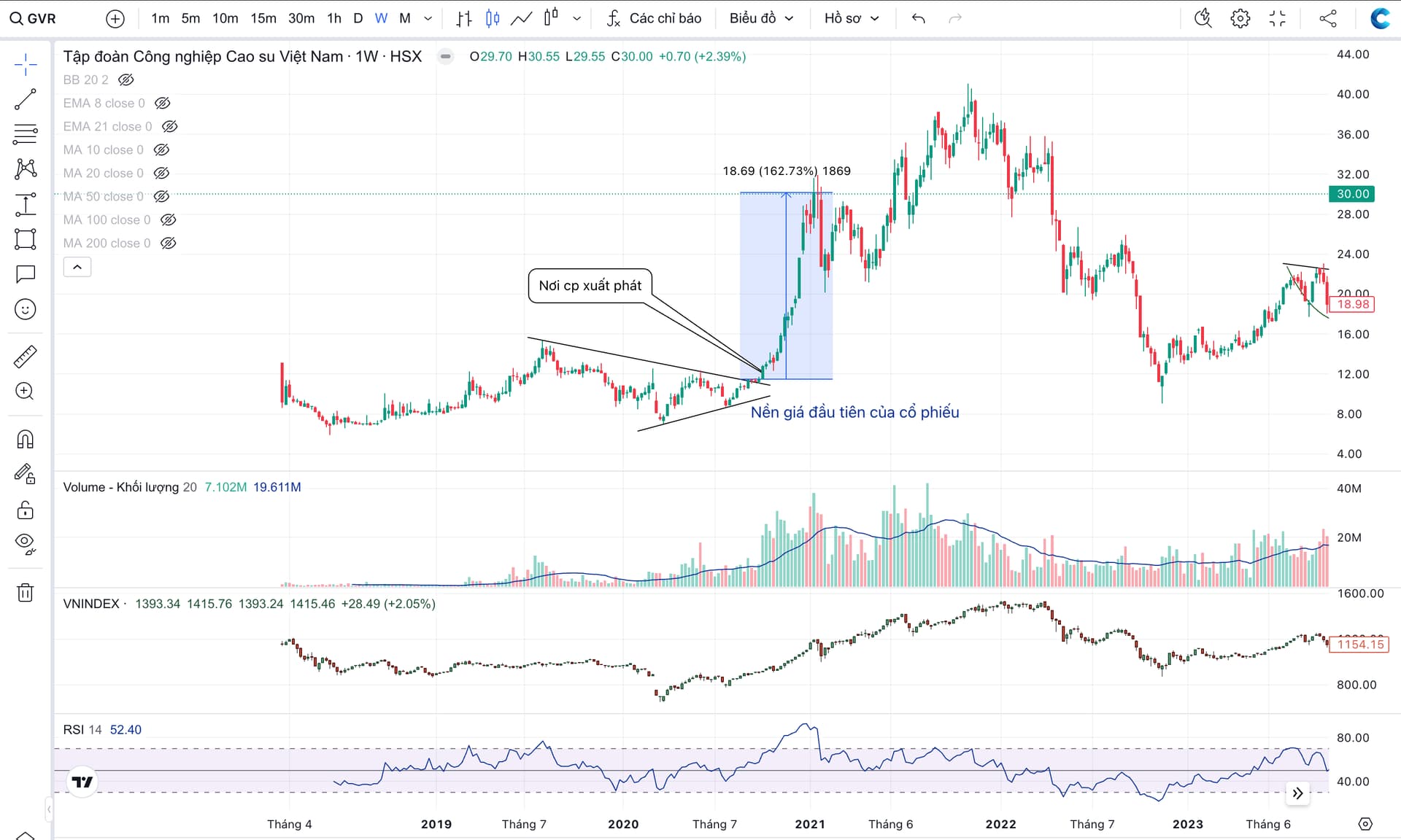 Đặc trưng của những nền tảng đầu tiên là khi bứt phá khỏi biên trên kháng cự, đó là cả một “bầu trời mênh mông” ko bị lượng cung phân phối nào chi phối bán xuống, nên thường những cổ phiếu có nền giá đầu tiên bứt phá cũng là những siêu cổ phiếu của thị trường, đặc biệt lại còn là ngành của Tứ trụ (Bank, Chứng, Thép, BĐS). Đã quá lâu để chúng ta nhìn thấy sóng BĐS, lại còn là một ngành có tính đầu cơ cao, chưa rõ sắp tới ra sao nhưng rất đáng để mong chờ.