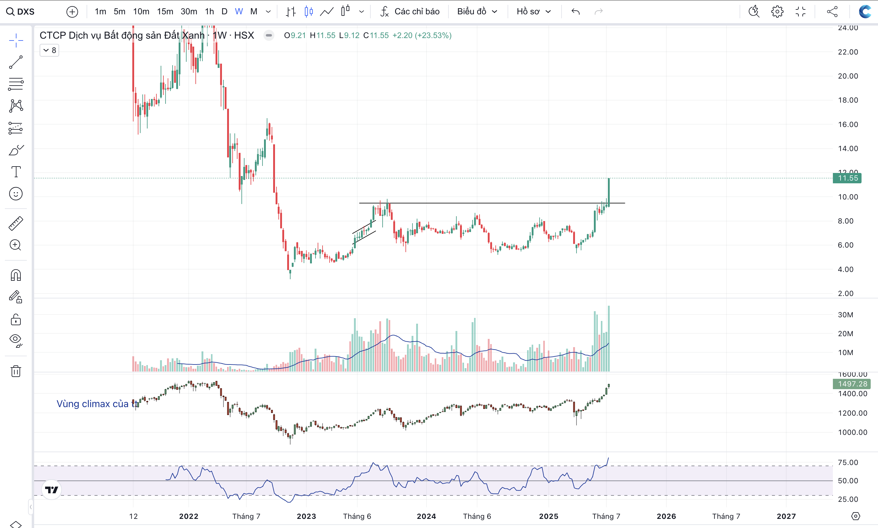 Một nỗ lực tăng giá của dòng BĐS, bộ đôi DXG - DXS cháy máy, cách tăng mạnh dường như cũng sẽ sẵn sàng cho một xu hướng uptrend trung hạn trong thời gian tới