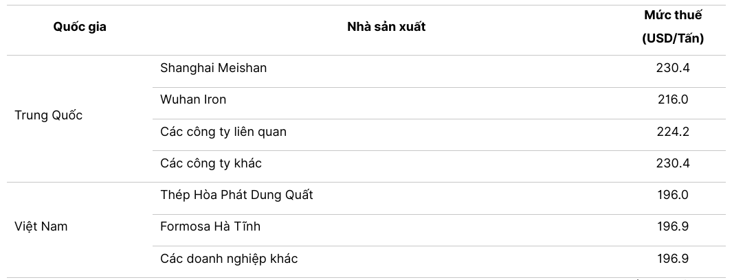 Tại EU, từ tháng 7/2025, Formosa Hà Tĩnh và phần lớn doanh nghiệp HRC Việt Nam chịu thuế chống bán phá giá 12,1%, trong khi Hòa Phát được hưởng mức 0%.